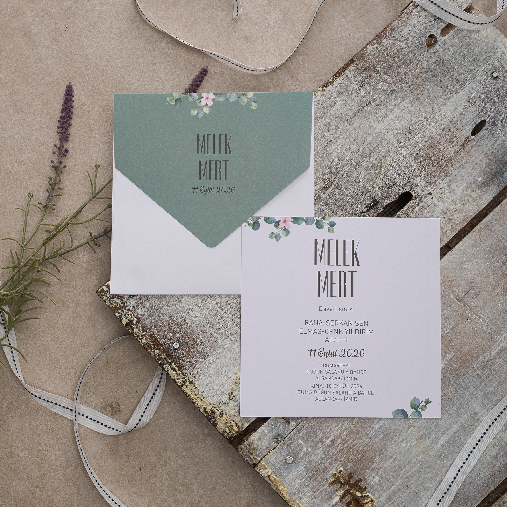 - Davetiye kutulu olarak tasarlanmış olup zarf ve aksesuarları içerisinde bulunmaktadır.