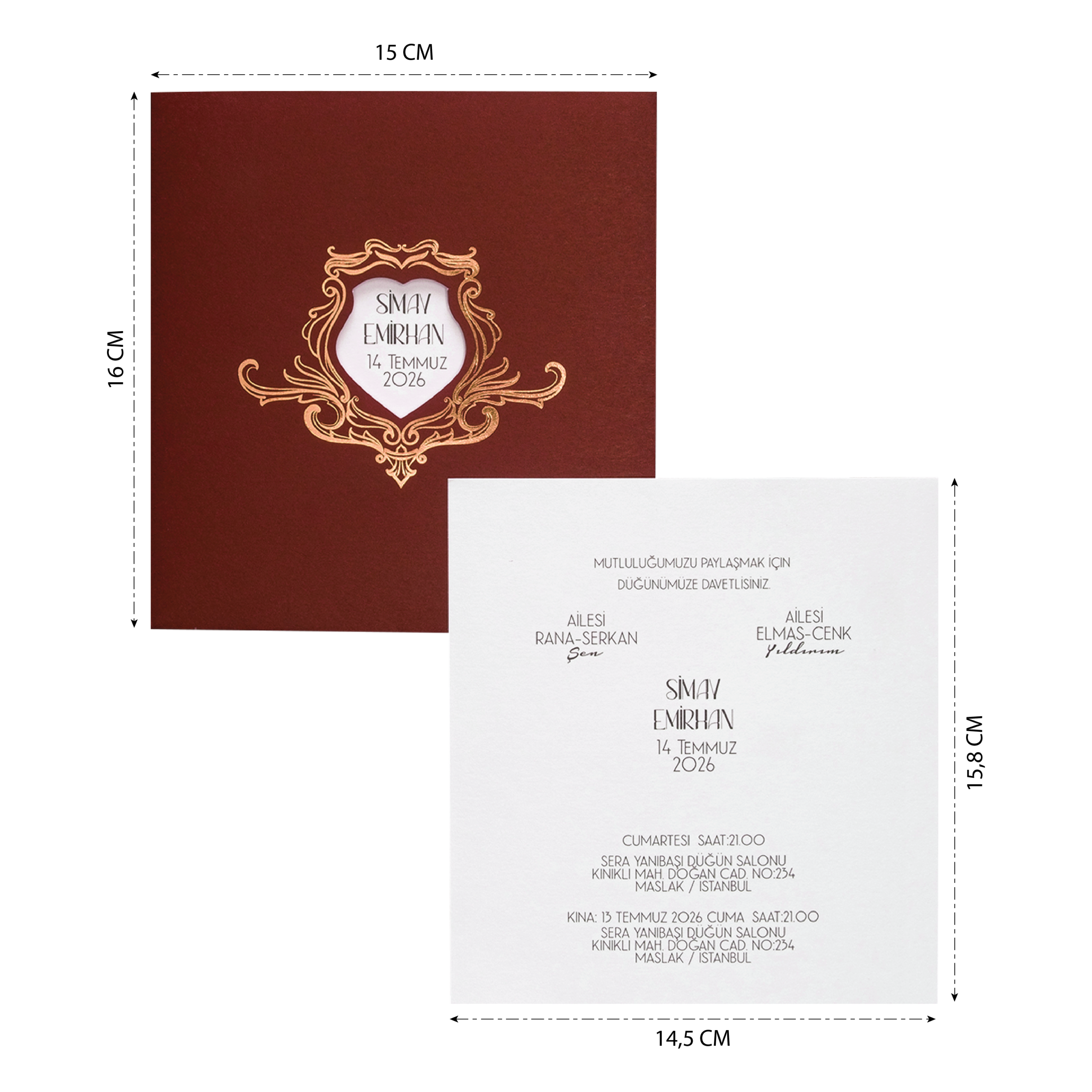 - Davetiyenin katlama/birleştirme ve zarflama işlemi müşteriye aittir.