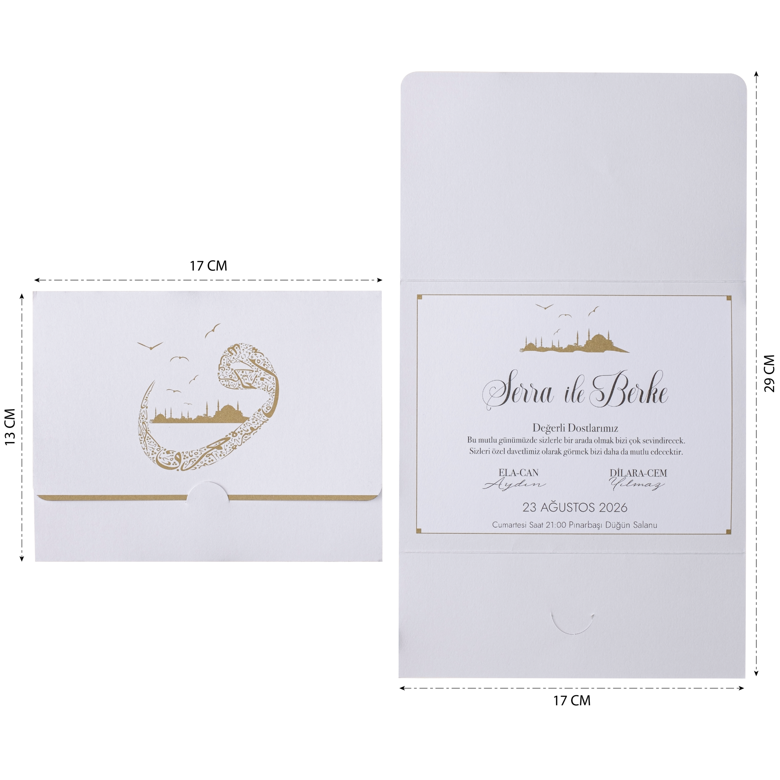 - Davetiyenin katlama/birleştirme ve zarflama işlemi müşteriye aittir.