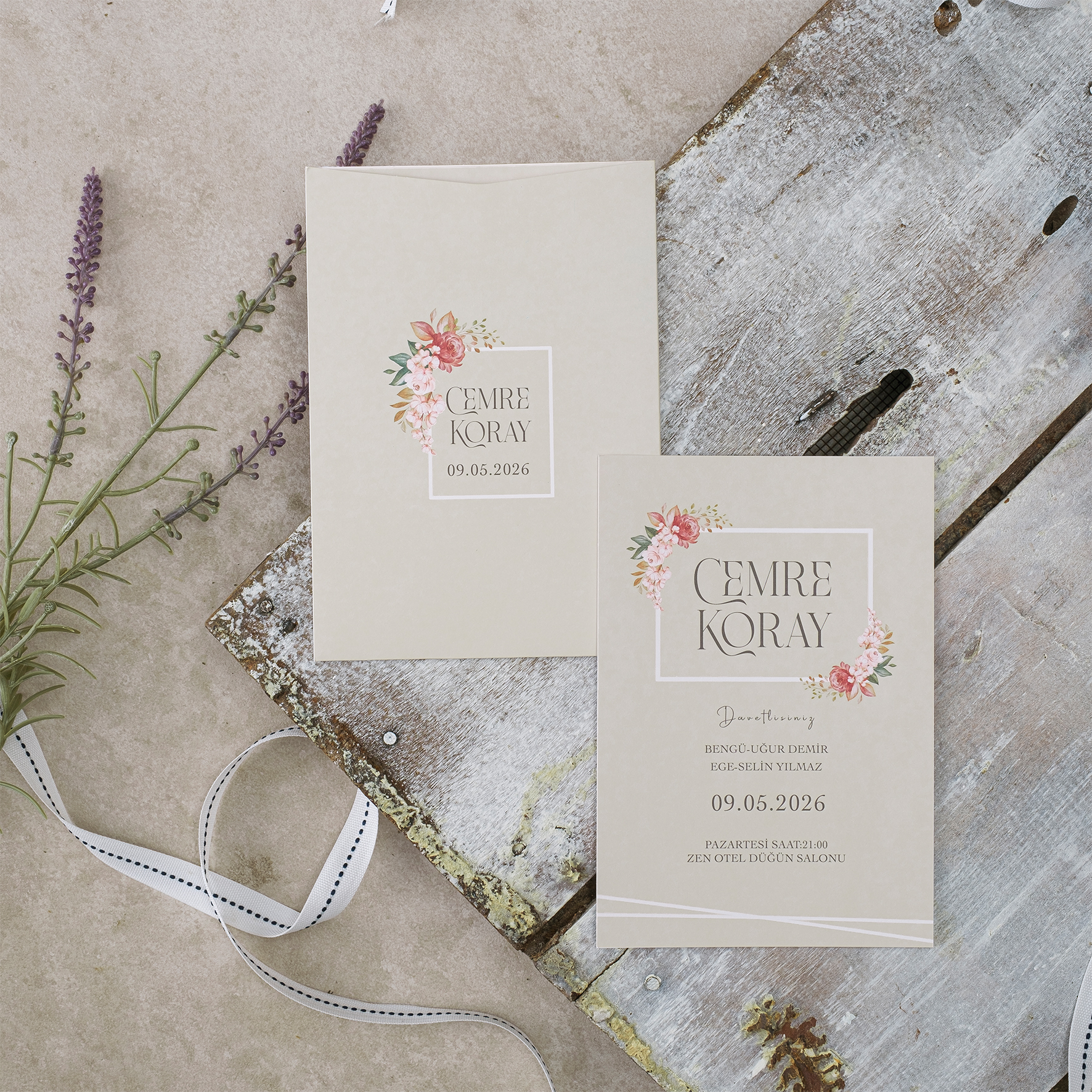• Davetiye kutulu olarak tasarlanmış olup zarf ve aksesuarları içerisinde bulunmaktadır.