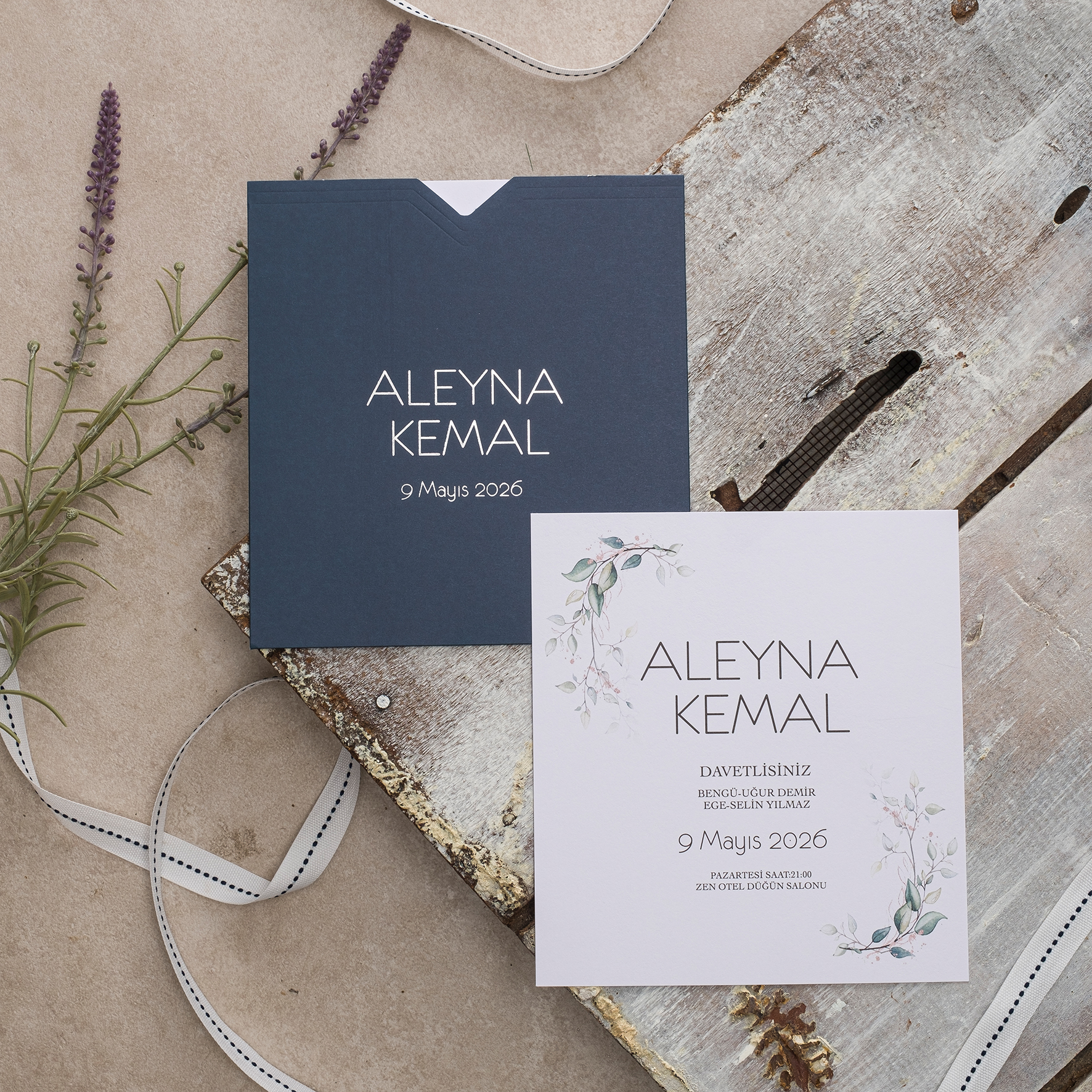 - Davetiye kutulu olarak tasarlanmış olup zarf ve aksesuarları içerisinde bulunmaktadır.