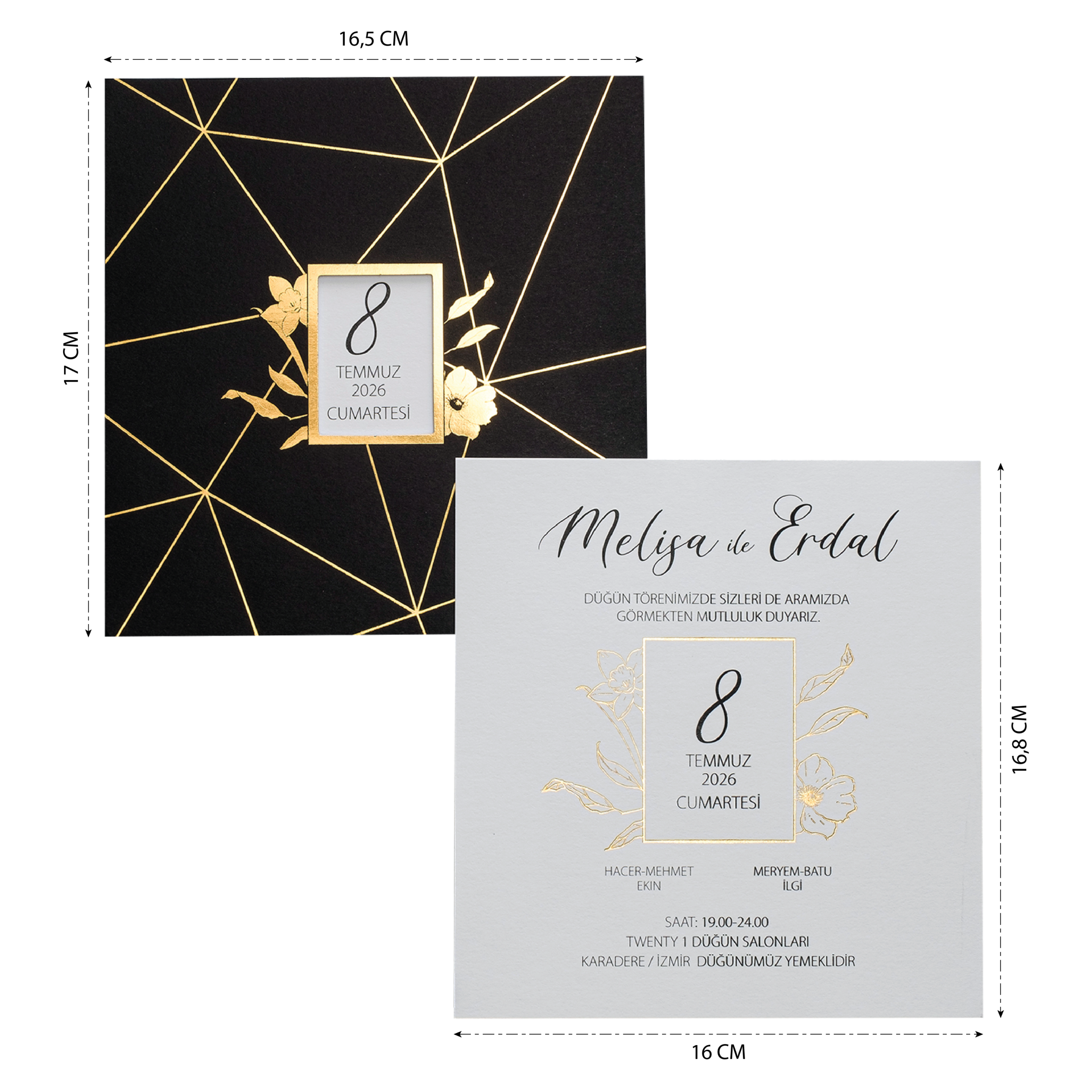 - Davetiyenin katlama/birleştirme ve zarflama işlemi müşteriye aittir.