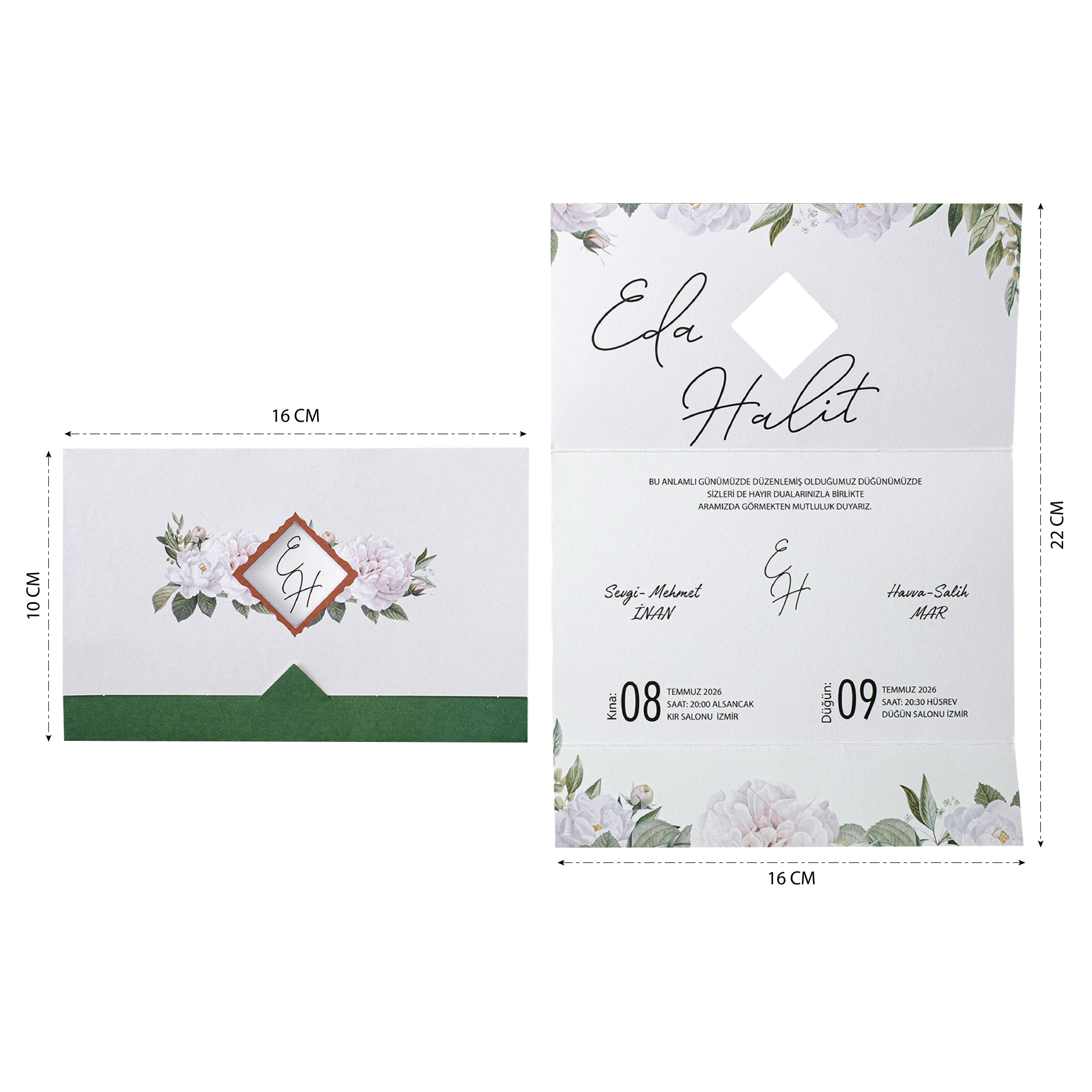 - Davetiyenin katlama/birleştirme ve zarflama işlemi müşteriye aittir.