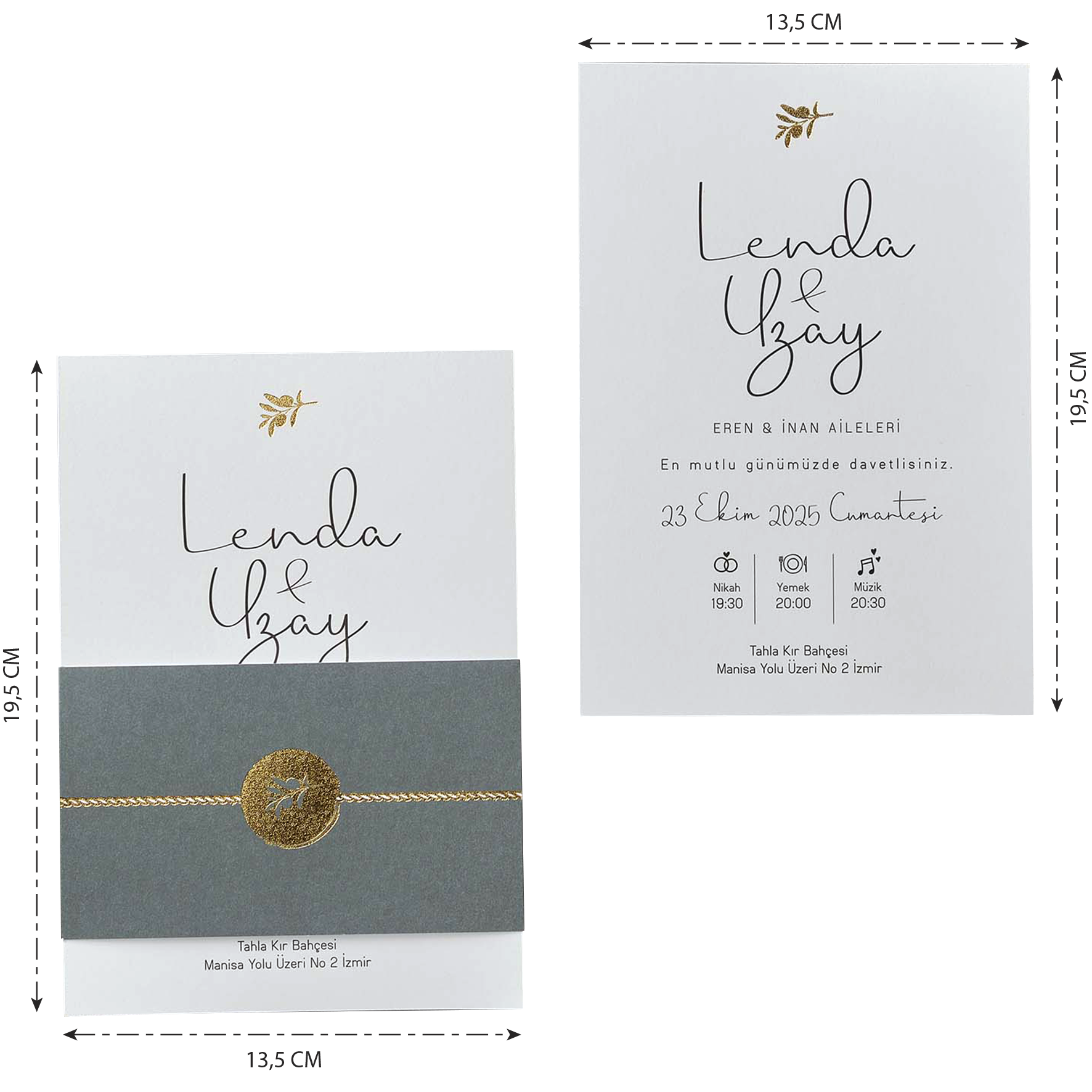 • Davetiyenin katlama/birleştirme ve zarflama işlemi müşteriye aittir.