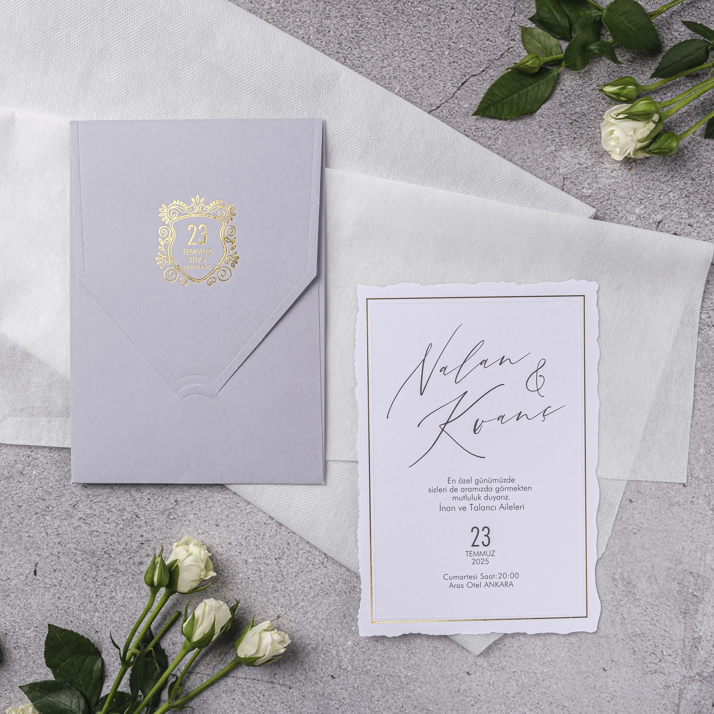 - Düğün Davetiyesinin Ofset, Varak Yaldız ve Serigraf baskısı ayrı olarak ücretlendirilir.