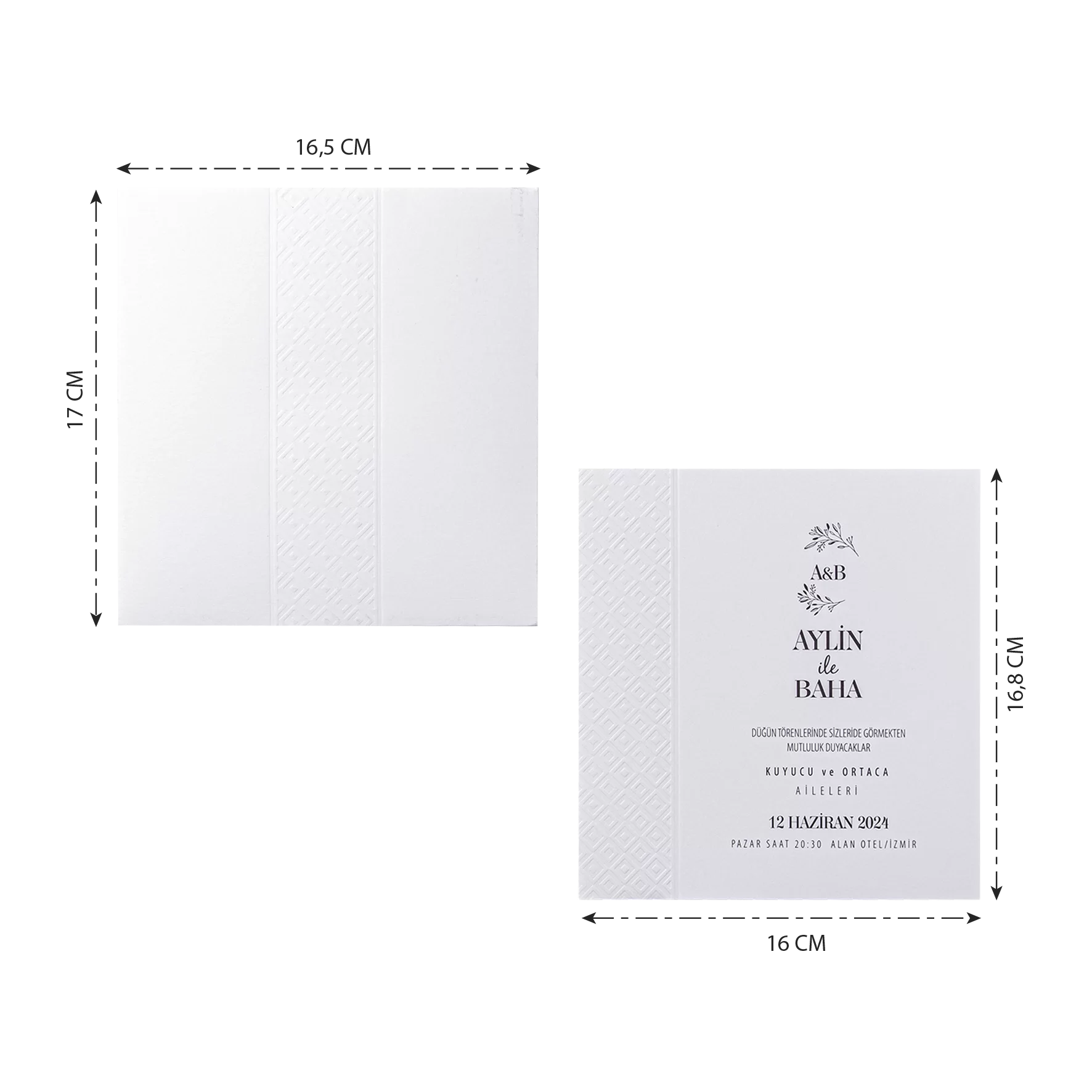 - Davetiyenin katlama/birleştirme ve zarflama işlemi müşteriye aittir.