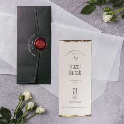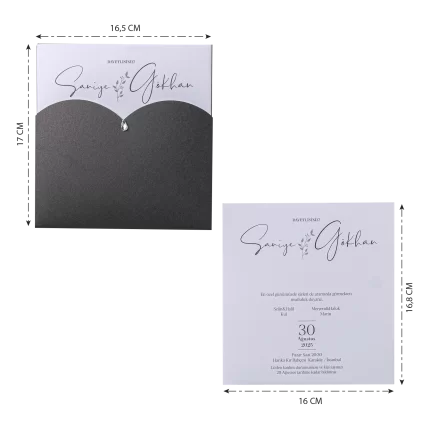 - Davetiye kutulu olarak tasarlanmış olup zarf ve aksesuarları içerisinde bulunmaktadır.
