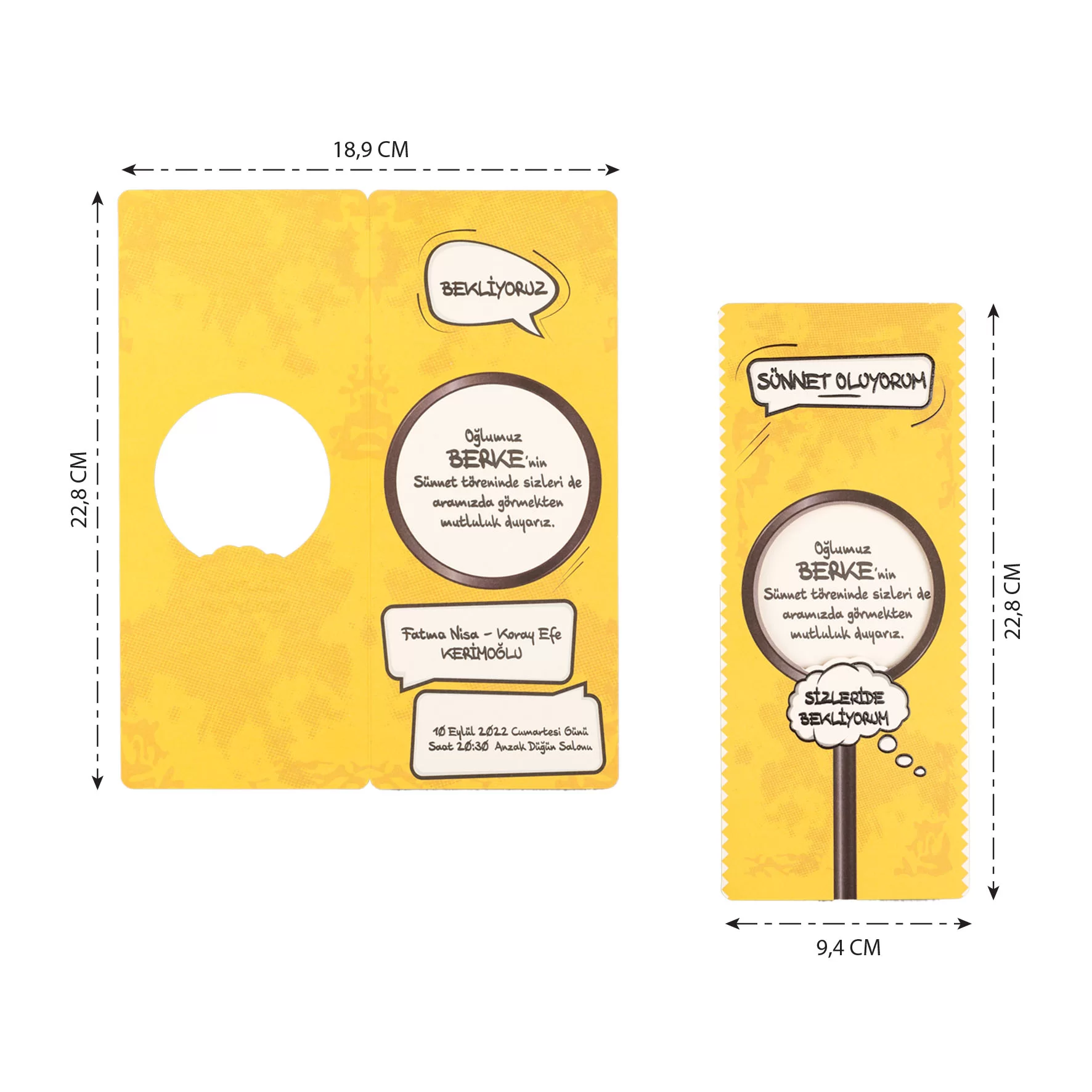 - Yüce dinimiz emretmiş. Duydum ki bu sünnetmiş. Küçük yüreğimle, Mutluluk dileğimle, Sizleri de bekliyorum, Sünnet düğünüme.