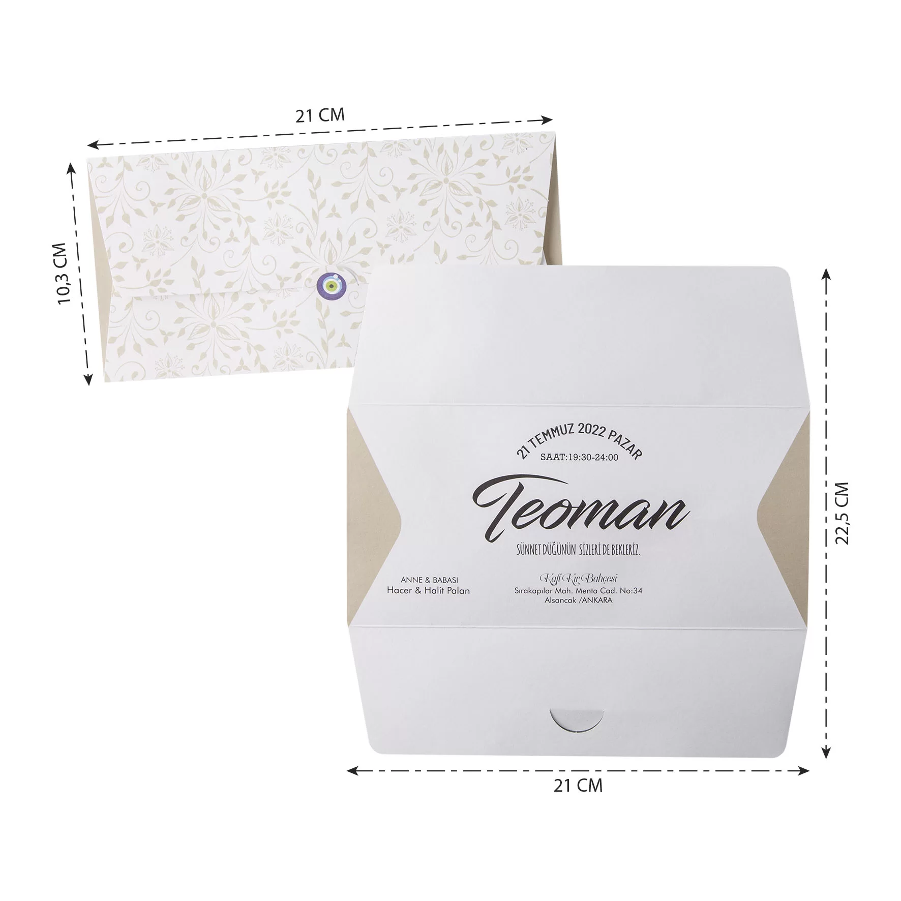 - Davetiyenin katlama/birleştirme ve zarflama işlemi müşteriye aittir.