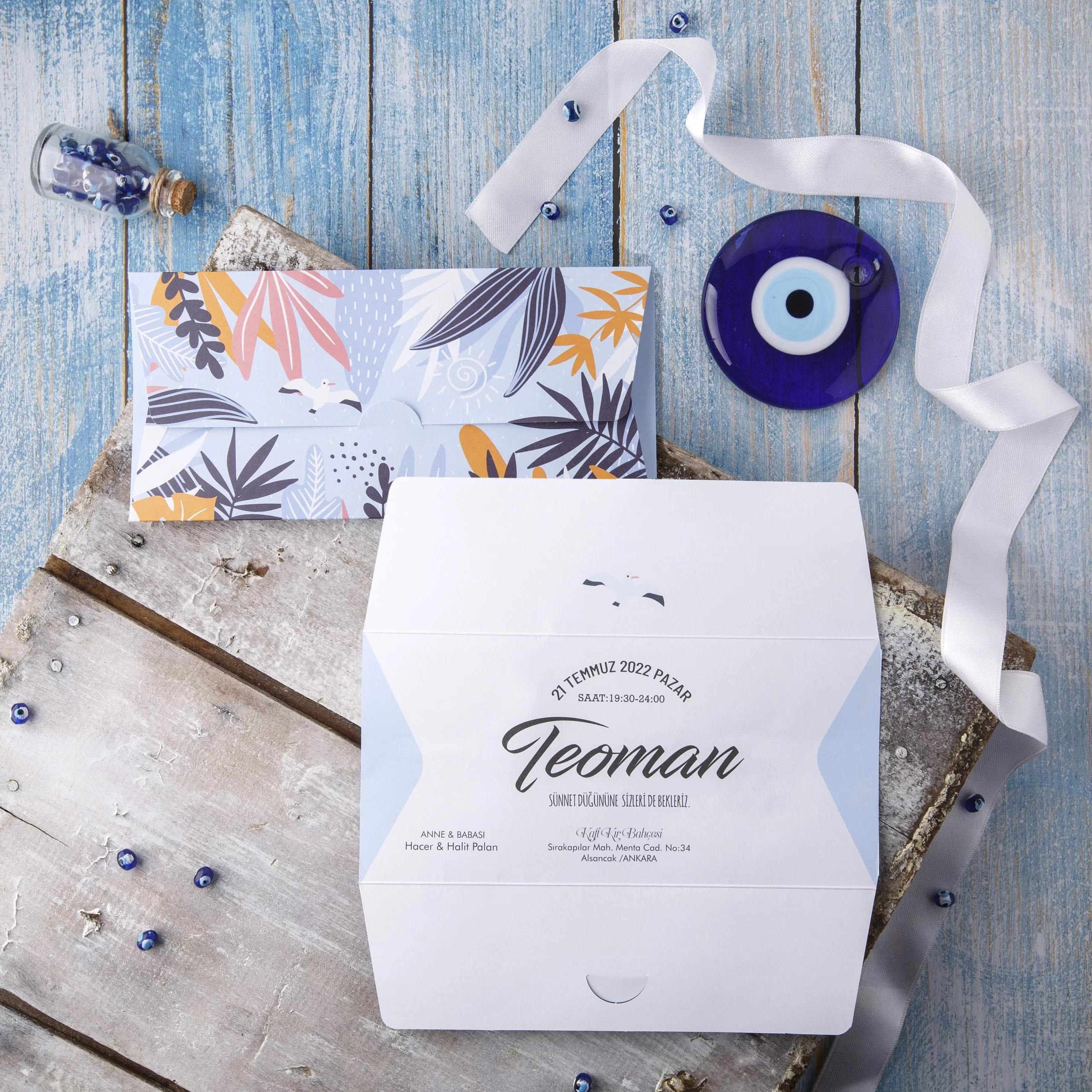 - Davetiye kutulu olarak tasarlanmış olup zarf ve aksesuarları içerisinde bulunmaktadır.