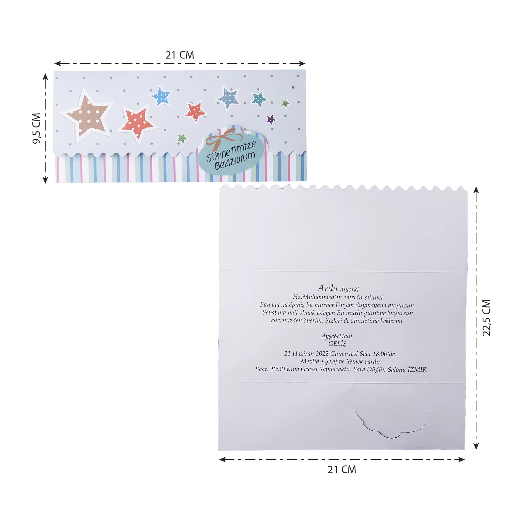 - Yüce dinimiz emretmiş. Duydum ki bu sünnetmiş. Küçük yüreğimle, Mutluluk dileğimle, Sizleri de bekliyorum, Sünnet düğünüme.