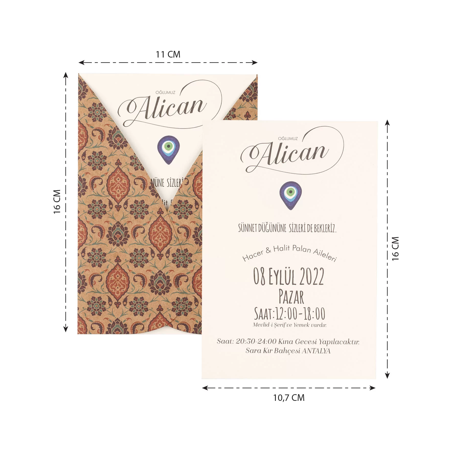- Davetiyenin katlama/birleştirme ve zarflama işlemi müşteriye aittir.