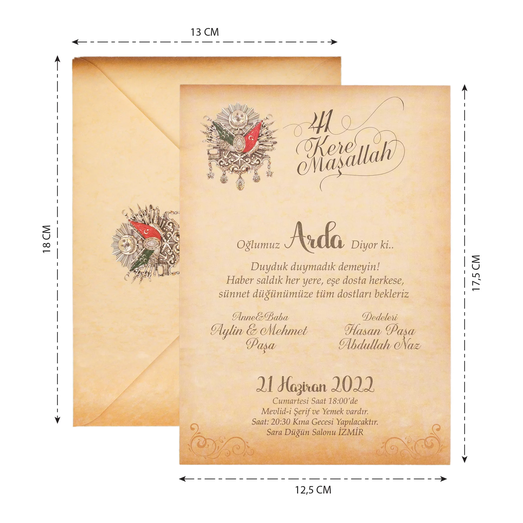 - Davetiyenin ebat bilgilerini açıklamaların altında yer alan Davetiye Ölçüleri bölümünde bulabilirsiniz.