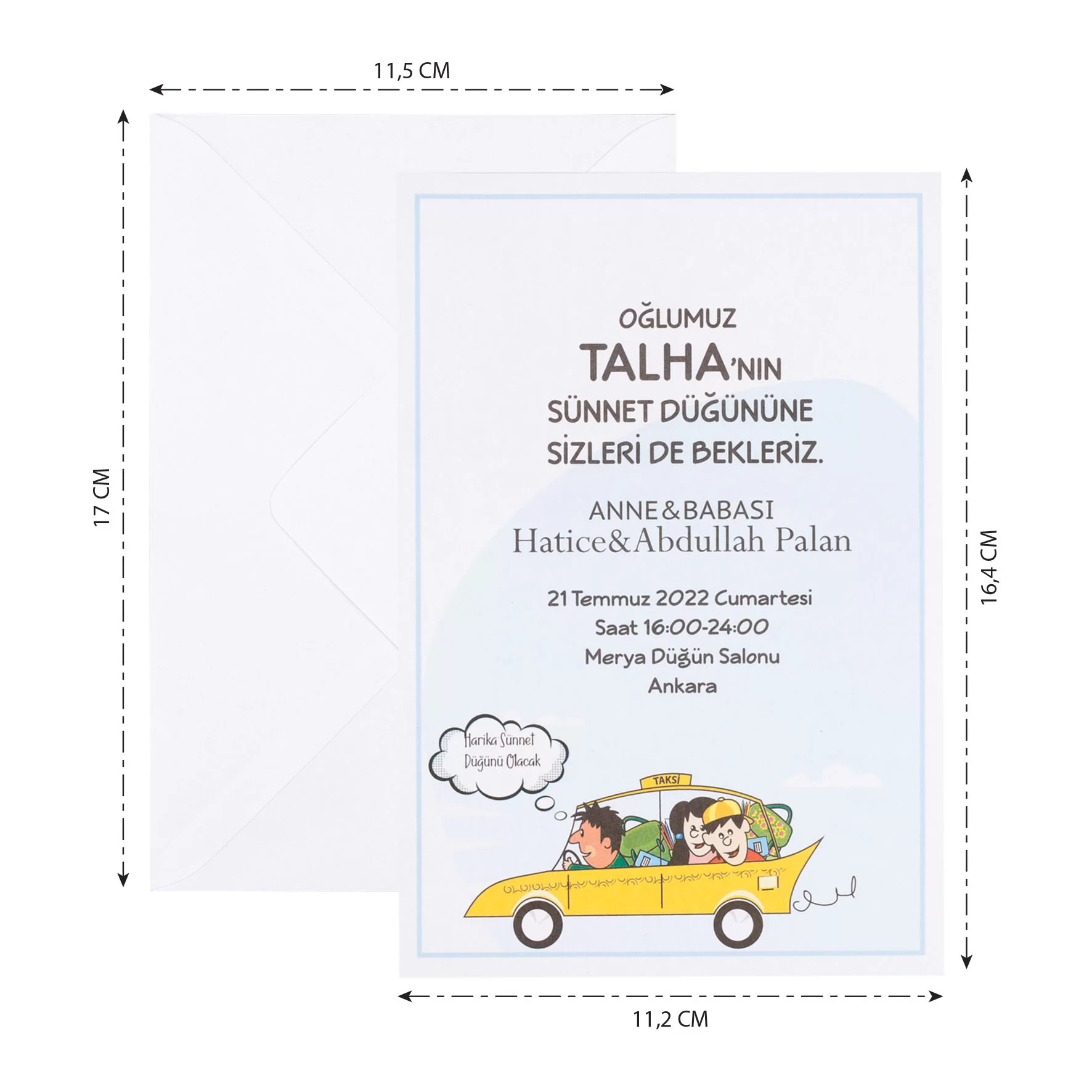 • Davetiyenin katlama/birleştirme ve zarflama işlemi müşteriye aittir.